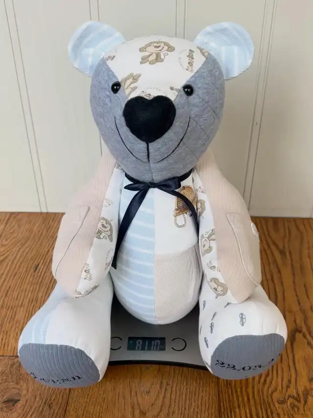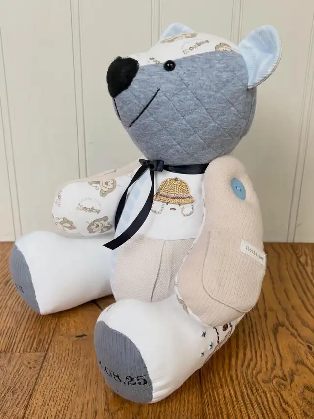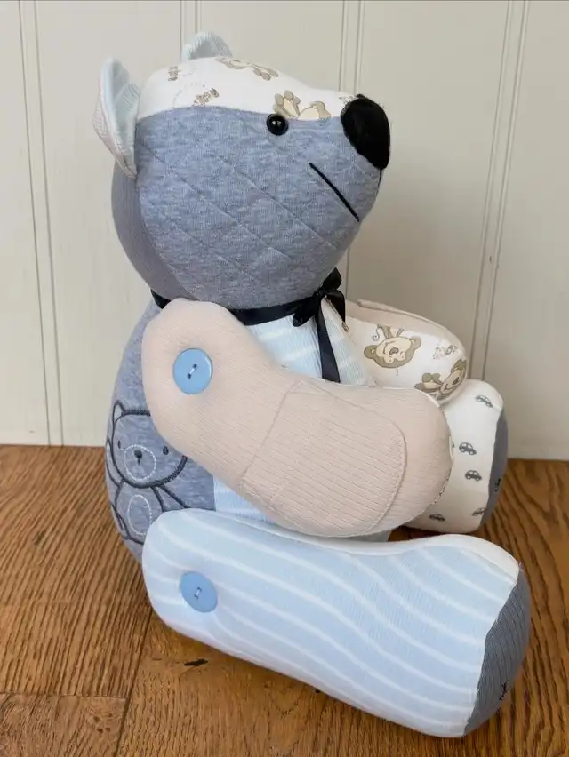 Memory bear out of a son's shirt.