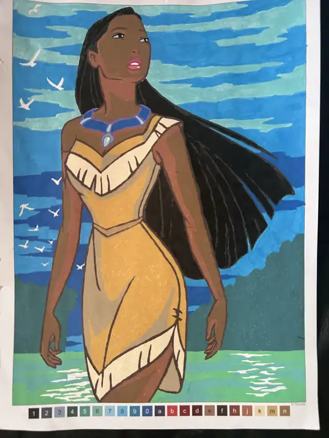 I avoided blending and kept my lines harsh in order to give it the classic color by number look, and avoided using any shading or adding any additions to the page. I may go back and add some stars!