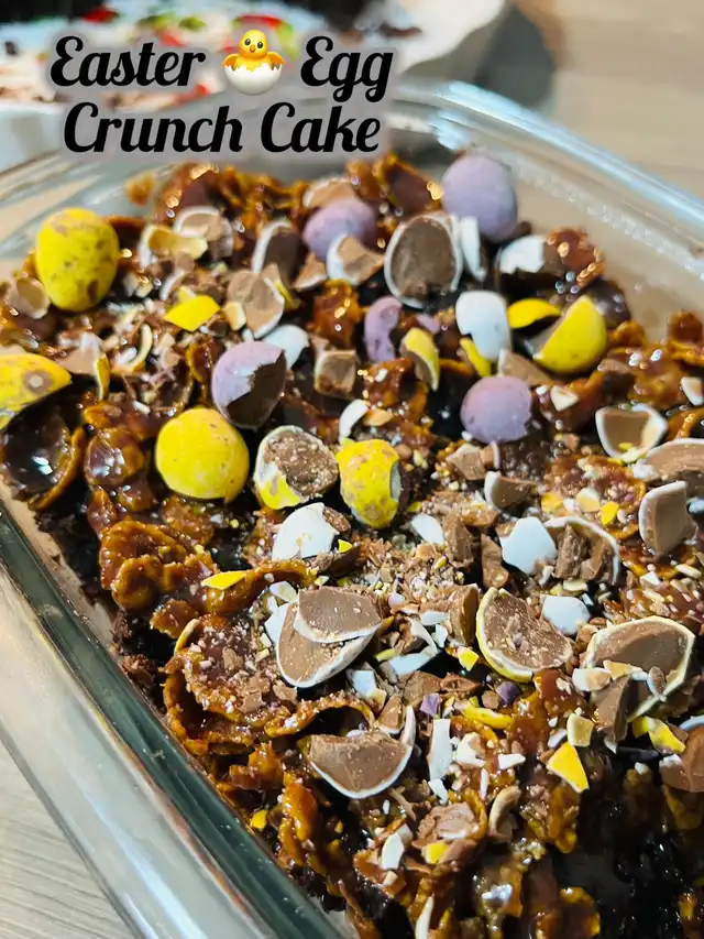 Decorate the top with candy-coated chocolate eggs and optional gummy worms to mimic a festive Easter garden scene.