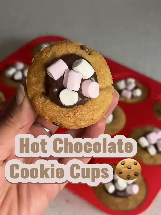 Soft chocolate cookies baked into mini cups and filled with creamy hot-cocoa mousse — topped with whipped cream, marshmallows, and chocolate drizzle. ⸻ 🍪 Ingredients (makes 24 mini cups) Cookie Cups: • 1 cup butter, softened • 1 cup sugar • 1 cup brown sugar