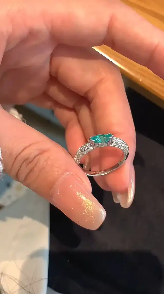 paraíba gemstone ring in s925 sterling silver 💙✨ pavé-set aqua stones + clear cz for high-shine sparkle. hypoallergenic and made to stack—cute for everyday, perfect for a night out. gift-ready box 🎁