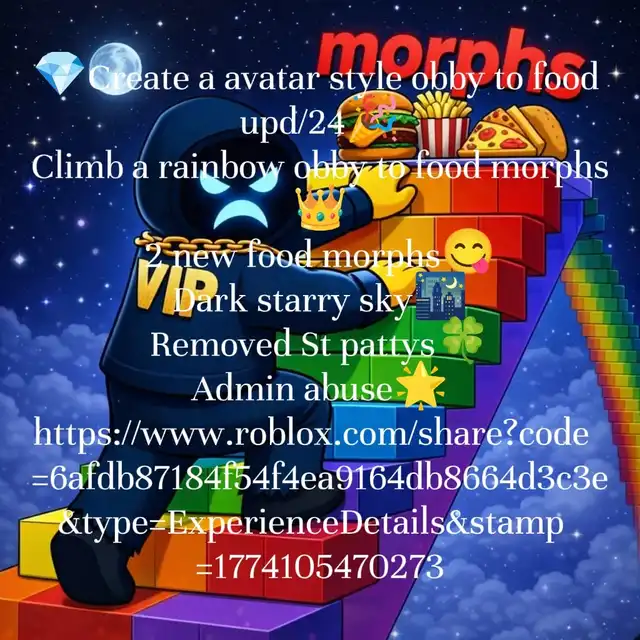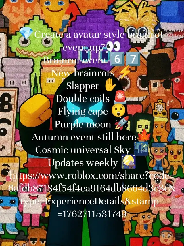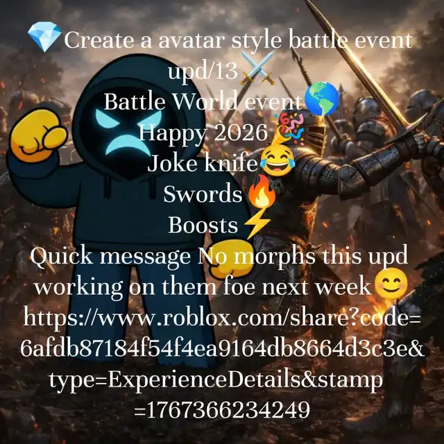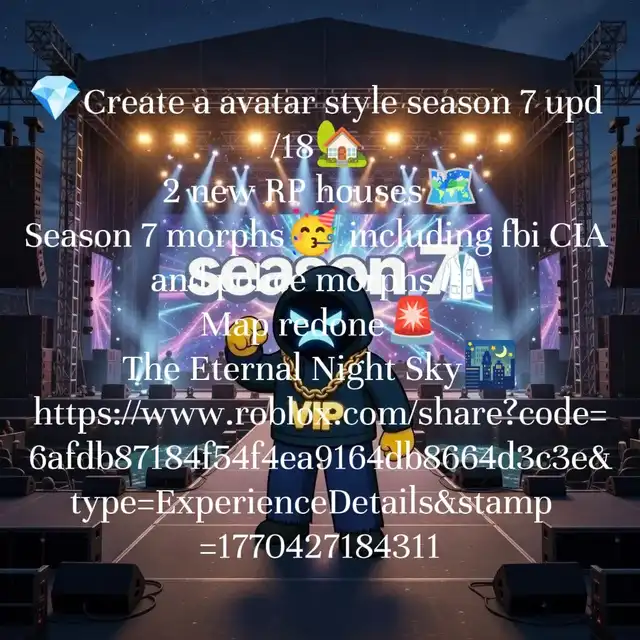 https://www.roblox.com/share?code=6afdb87184f54f4ea9164db8664d3c3e&type=ExperienceDetails&stamp=1772281642828