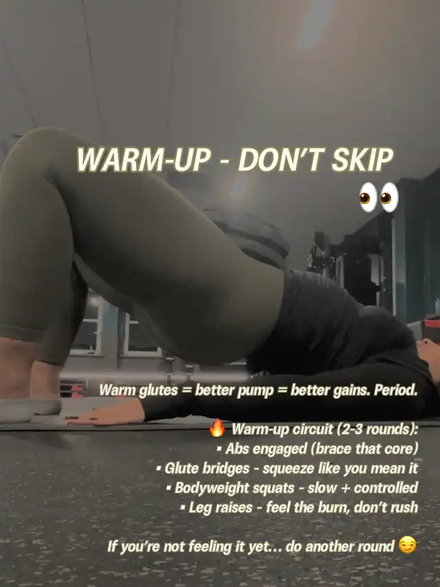 POV: you said you wanted 🍑 gains but skipped glute day before… not today 😌 This is your no-excuses glute pump guide — activation, isolation, and that “why does sitting hurt?” energy tomorrow 🔥 Warm up like it matters (because it does), slow your reps, squeeze HARD, and leave the ego at the do