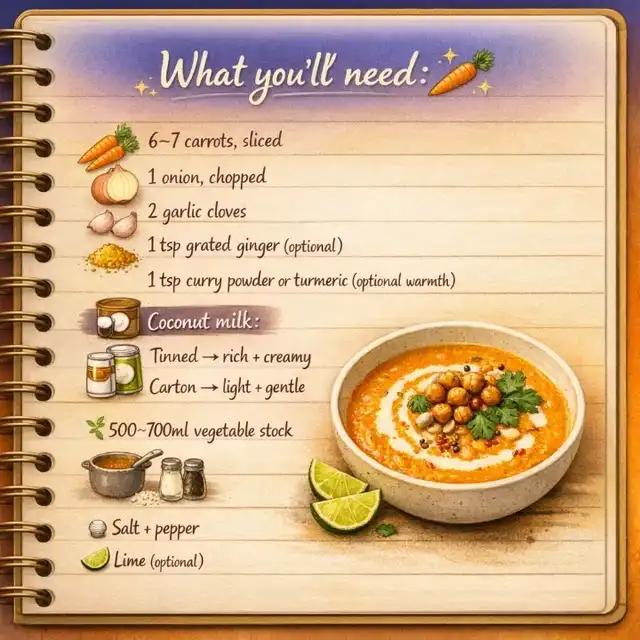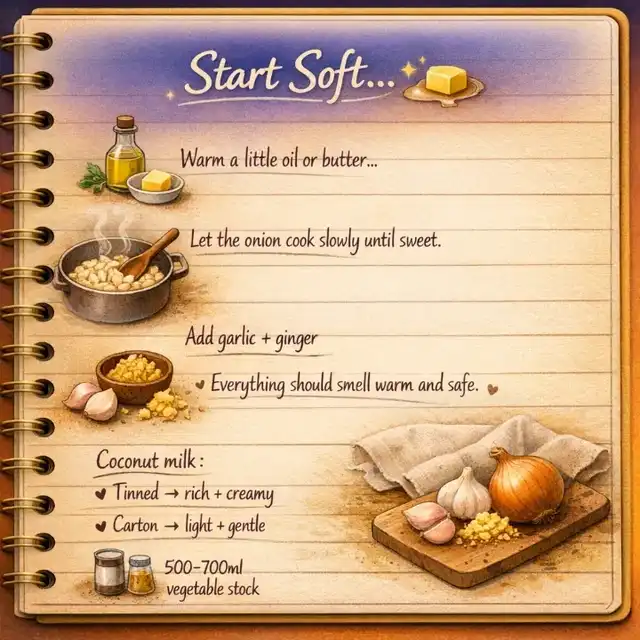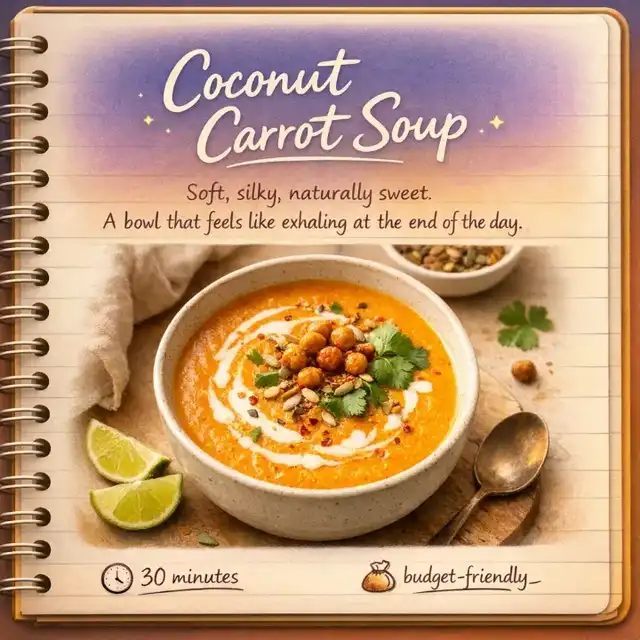 Soft, silky, naturally sweet — this cozy soup is ready in 30 minutes and made with coconut milk (tinned or carton). Budget‑friendly, comforting, and perfect for gentle evenings. Swipe through for ingredients, step‑by‑step visuals, and cozy topping ideas. #easyvegansoup #SOUP #ca