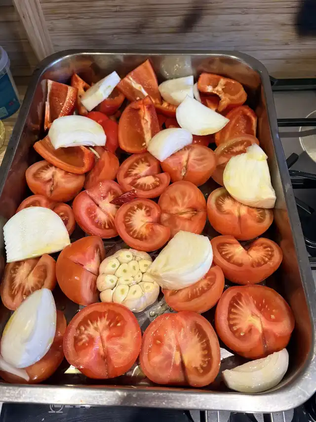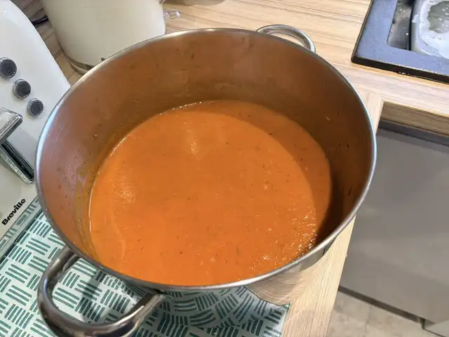 Michael a little under the weather so made him some tomato and red pepper soup today, with ALOT of garlic, some turmeric and cumin to help his scratchy throat and bad chest and if you squint you can see the teeny tiny chilli in the middle but they are like rocket fuel so one is all you need! Ro